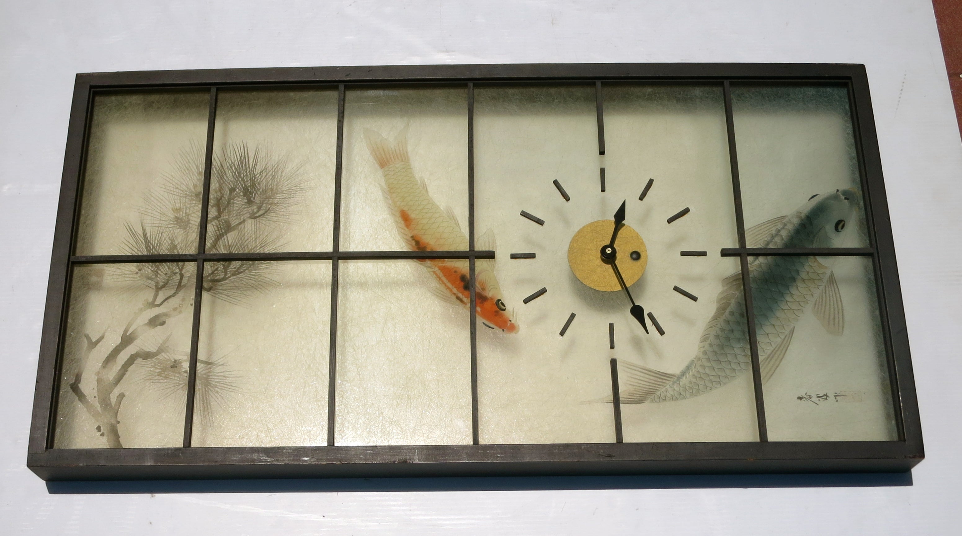 Mid Century Asian Modern Large Japanese Wall Panel Clock On Fiberglass At 1stdibs